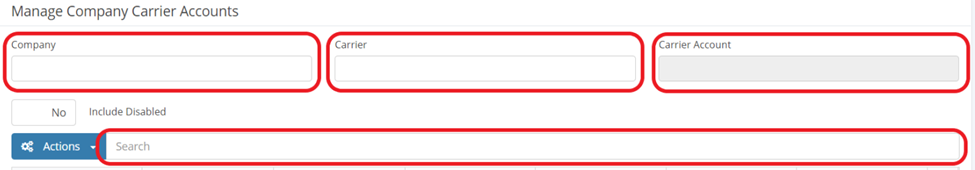 Using either the Company, Carrier or the Carrier Account filters or alternatively via the search bar, find and select the desired Company Carrier Account.