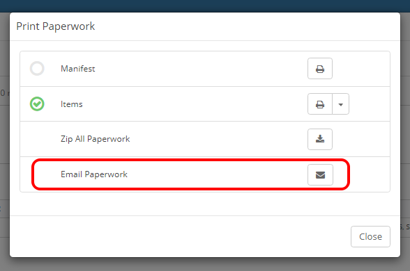 Machship has provided an option to email Manifest paperwork relating to the consignment to the Sender. You'll be able to action this from anywhere you can print a consignments paperwork in MachShip.
