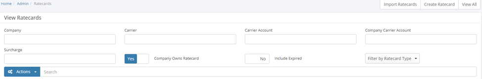 - Carrier - This will filter down to show all Ratecards which relate to that carrier