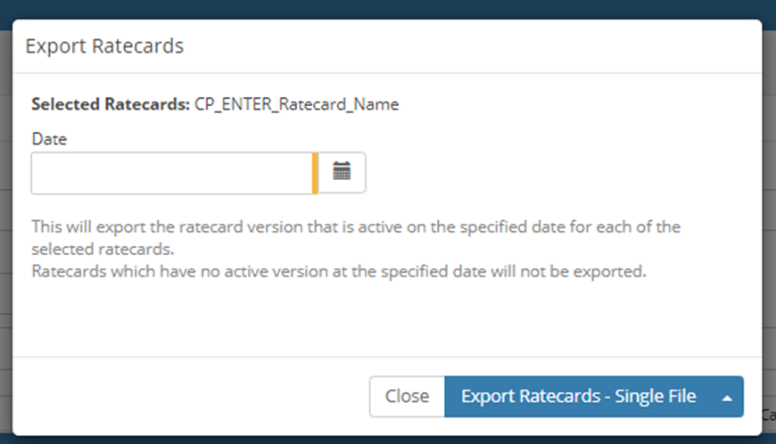 If you opt to export a Set Version then you will be prompt with the Export Ratecards Modal.