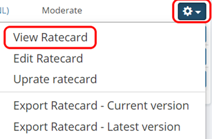 Then select the drop-down cog on the right-hand side and select View Ratecard