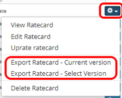 Then select the drop-down cog on the right-hand side and select to export either a Select Version or the Current Version from the Ratecard. This will follow the same process as above.