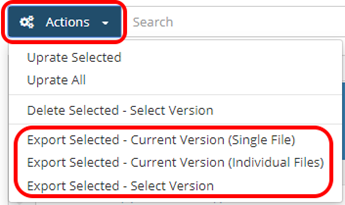 Through the View Ratecards page, you'll be given the option of exporting either the current or a select Ratecard Version from the Ratecards you have selected.