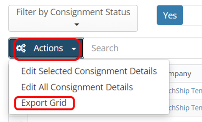Ensure the grid contains the data you wish to export. Once clicked, the file will download in a .csv format with a naming convention as Held Consignments_*date*.csv.