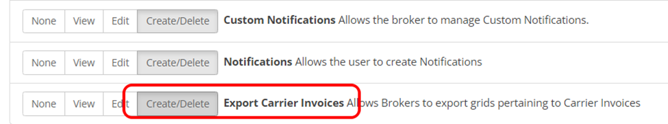 Note: If you do not have access as an Administrator or Organization User, you will not be able to access the above links. You will also need to ensure that your assigned role has access to export the Carrier invoices data.