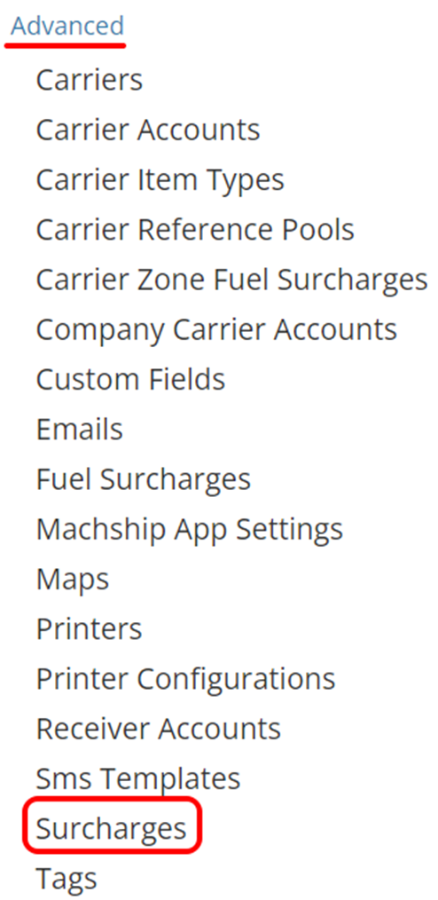 Under the Advanced Options, select Surcharges