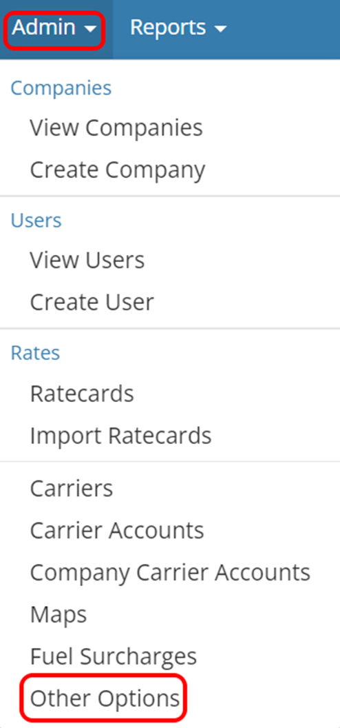 Navigate to Admin then Other Options: