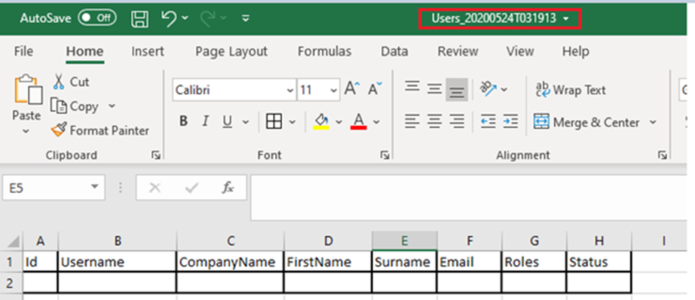 Ensure the grid contains the data you wish to export. Once clicked, the file will download in a .csv format with a naming convention as Users_*date*.csv.