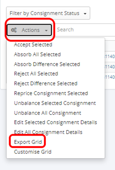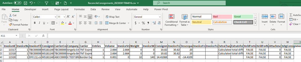The file will be downloaded in a .csv format containing all the reconciled consignments.
