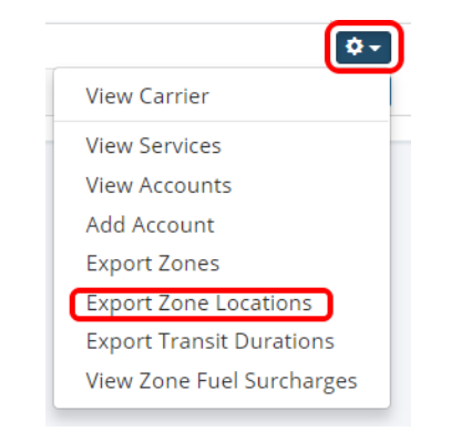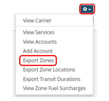 This will take you to the Export Carrier Zones page. Select Export Carrier Zones to CSV