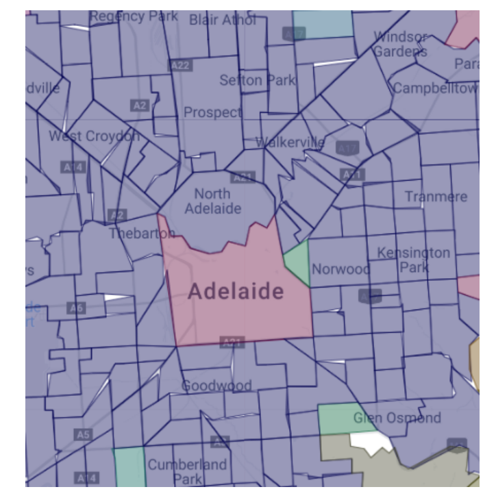 Any polygon which contains a suburb which a carrier does not have on their zone list will be signified with a red outline.