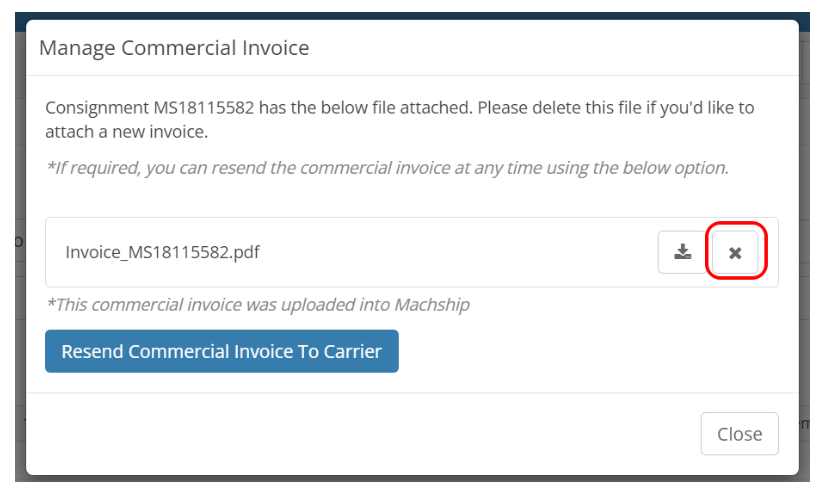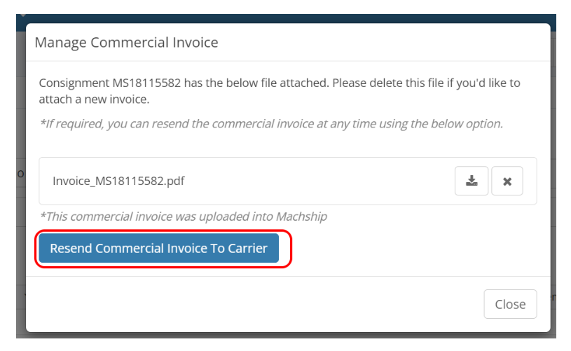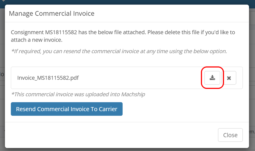 You will then see the Manage Commercial Invoice modal shows like the below: