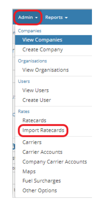 When you look to import a file without a matching ratecard abbreviation then the import modal will look like the below image.