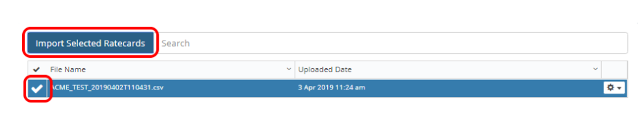 Note: Should there be no matches in MachShip for a ratecard with the same ratecard abbreviation, then the option will be to create a NEW ratecard. If this is showing you will need to re-upload the ratecard template with a matching Ratecard Abbreviation.
