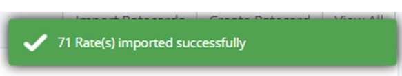 A green 'Ratecard(s) imported successfully' notification will show in the top right corner of the screen when the import was successful and the number of rates imported. The version will then be visible against the Ratecard in MachShip.