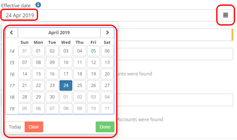 To set a date, select the Calendar Icon and the date. The date will then appear as below: