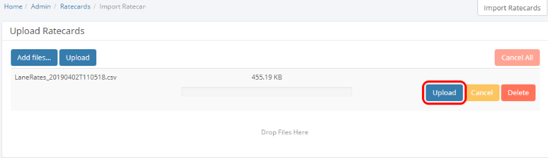2. Click on Upload to start the process of importing the new ratecard. At this point, the rate card will be validated for any errors. Common errors and their explanation can be found in this article