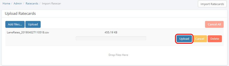 This will prompt the Import Ratecards Modal to appear.