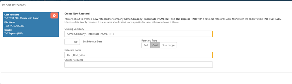 Because we wish to import and create a sell ratecard, simply select the switch and it will change to be the below: