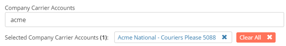 To add a Company Carrier Account, type in the account name and when it appears, select it from the list.