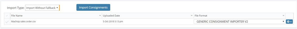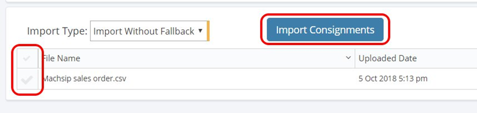 You need to select any file on the list that you want to import and click on Import Consignments button to start the process.