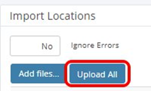 To import the locations into MachShip select the relevant file(s) and then select Import Locations.