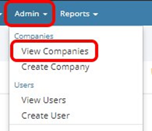 1. Select Admin, then View Companies.