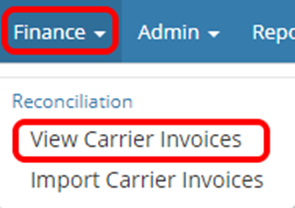 Select the Finance drop-down and select View Carrier Invoices.