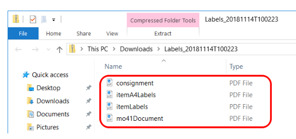 The Zip file will open up to a folder with all your documents, as seen in the image below. Double click on the label you would like to print and follow the prompts.