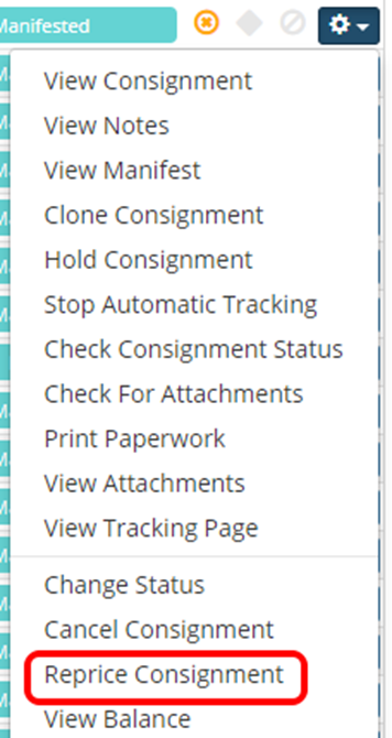 Note: Repricing consignments, as the name suggests, re-calculates the cost of a consignment against the most up-to-date lane rates, fuel surcharges, and surcharges in MachShip. If you have applied any custom or manual pricing to a consignment, please be aware that these will be re-priced against the stored values in MachShip.