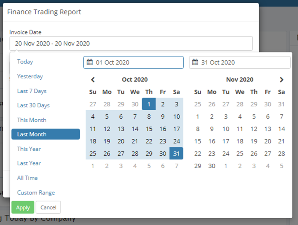 The Finance Trading Report contains a full list of client and carrier Invoice data allowing for a full breakdown of true profit margin information. The report will run data for all companies in your company tree.