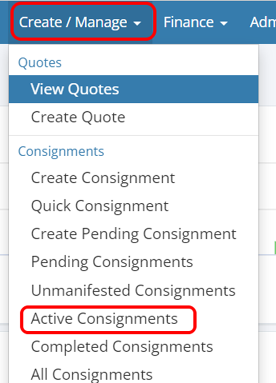 Navigate through to any of the operational grids - an example of an operational grid is the Active Consignments page which can be accessed via the below: