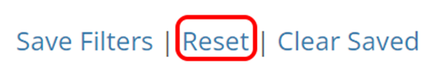 If you have adjusted the filters on a page and wish to revert to your saved filters, simply select the Reset option highlighted below: