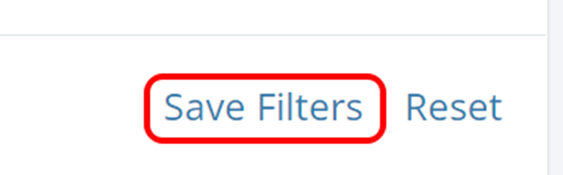 Note: The Save Filter option will hold your saved options through out logins to the platform as long as you are logging into the same browser and same computer. Should either change, you must reset and re-save your filter options.