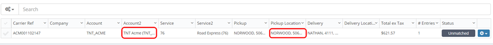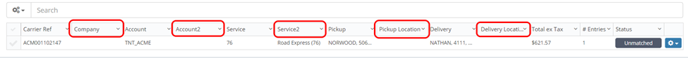 In order to turn any of these unmatched invoice entries into a consignment, MachShip must be able to match up the entry with a company, carrier account, service, pickup location, and delivery location. MachShip will attempt to automatically assign these 5 fields but when this cannot be achieved it is required that these properties by manually set. This is completed in the unmatched entries screen.