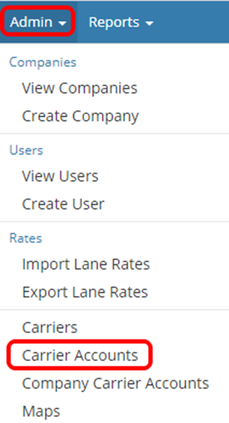 Select Admin and Company Carrier Accounts.