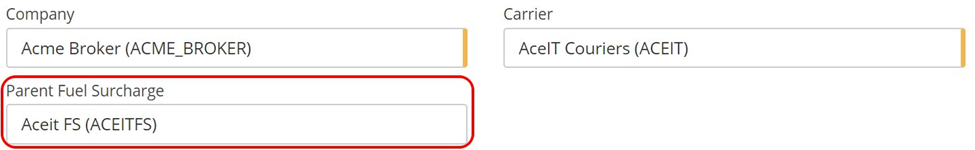 The Parent Fuel Surcharge input box will allow you to select from the available created fuel surcharges.