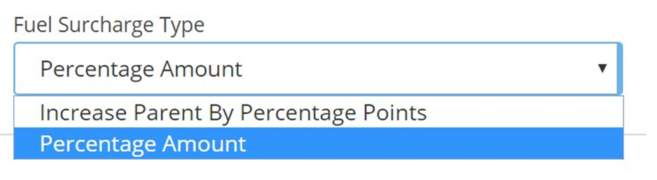When a Parent Fuel Surcharge is populated in the fuel surcharge box, the options in the Fuel Surcharge Type drop-down will change to: