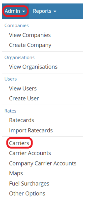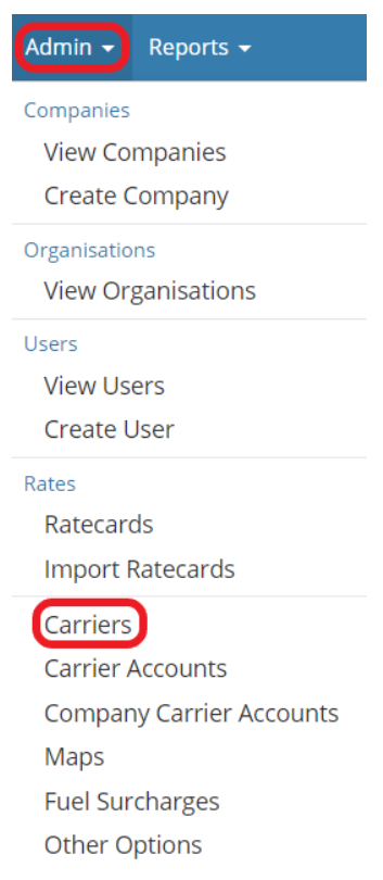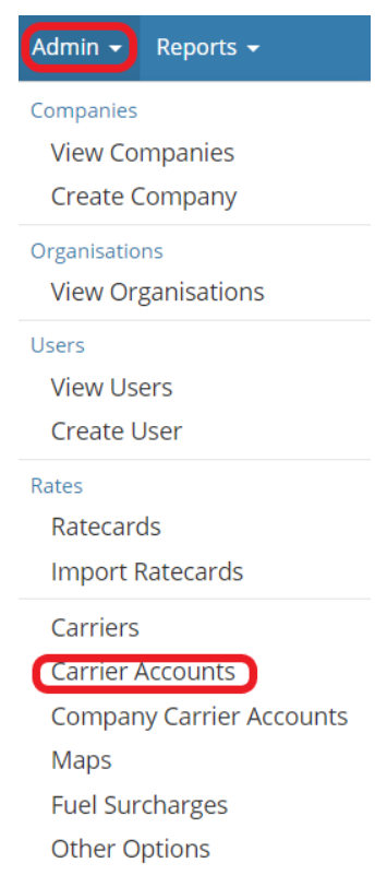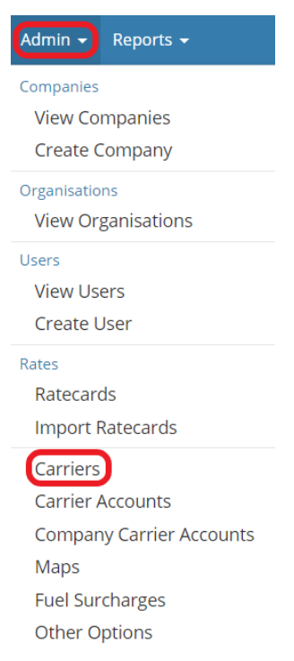 Once the Carrier Account has been created we will need to get the abbreviation. To do this go to Admin and Carrier Accounts.