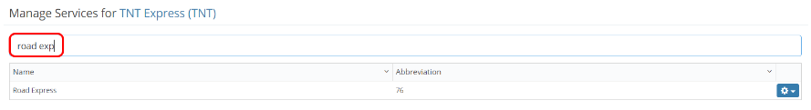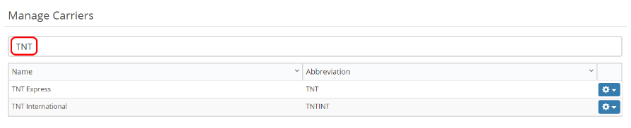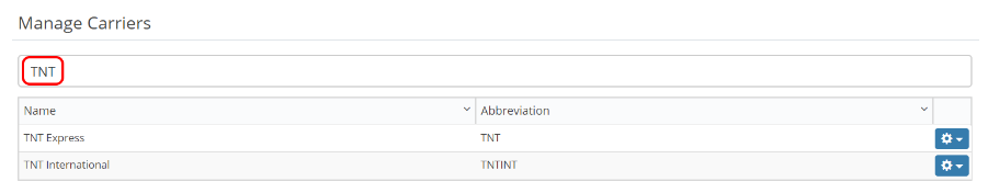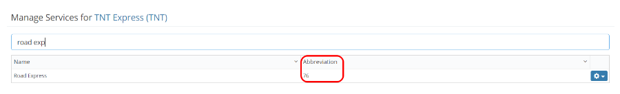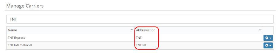 The abbreviation will be shown in the second column of the grid. In the example we will be using the abbreviation field will be TNT. If you cannot find your required carrier please contact support@machship.com.