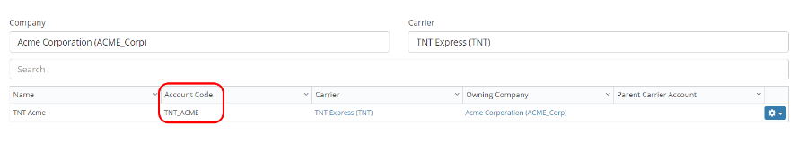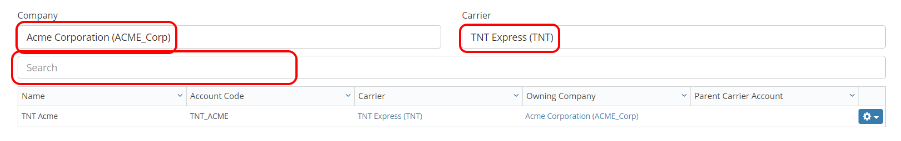 Use the Company or Carrier filters along with the Search bar in order to find the created Carrier Account.