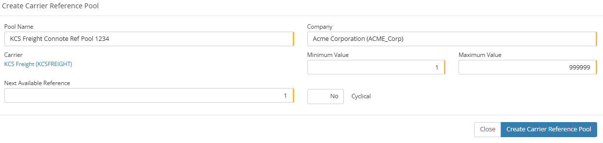 here. KCS Freight requires the creation of just 1 reference pool, for the Connote number.