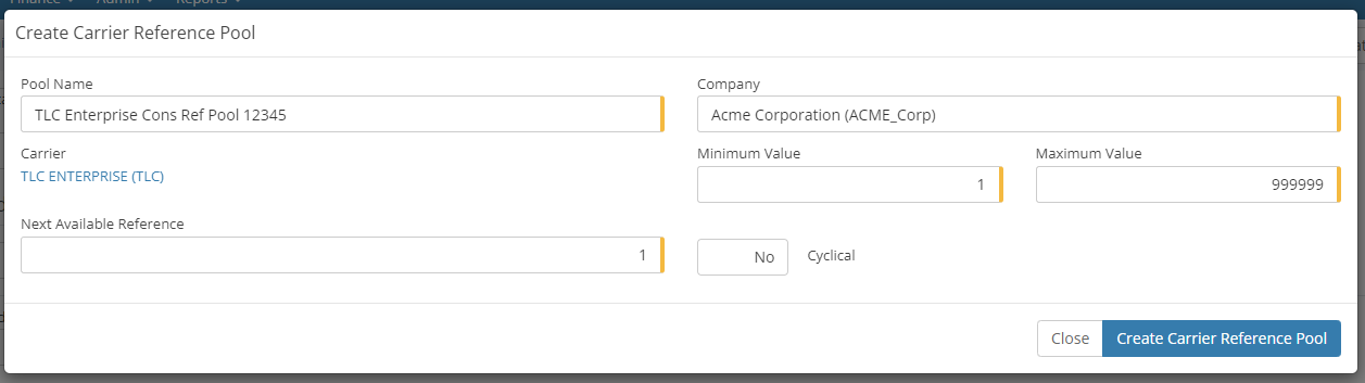 To create the reference pool select the Create Carrier Reference Pool button at the bottom of the page.