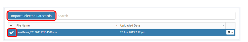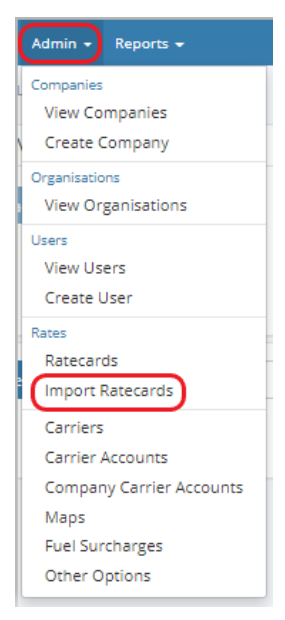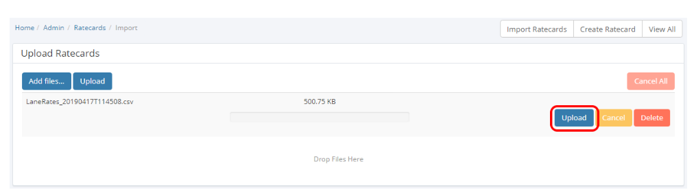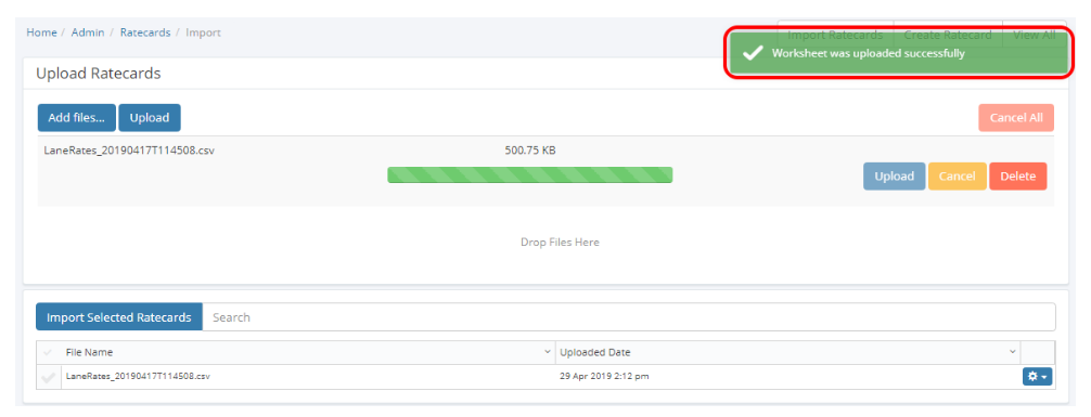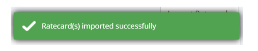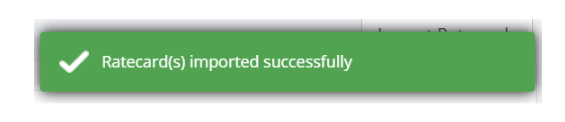 A green Ratecard(s) imported successfully prompt will show in the top right corner of the screen when successful.