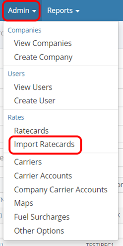 To import the file(s) simply select the file(s) by clicking on the tick which is located in the far left column. Then select Import Selected Ratecards.