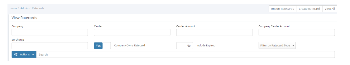 2. Locate the required rate card using either the Filter function or Search Bar. Use the filters to find the Ratecard you wish to export: