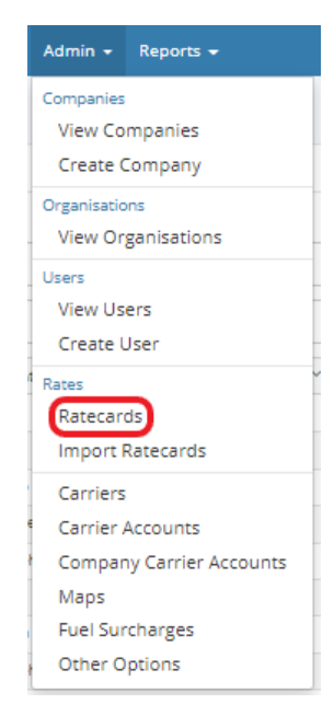 1. Select Admin and Ratecards.