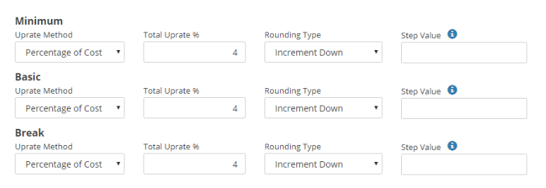 The uprate method will either be Percentage of Cost (% increase/decrease) or Dollar Increase