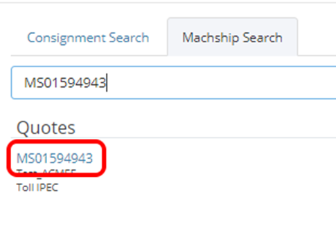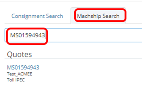 Ensure you select MachShip Search and place the reference in the search bar.