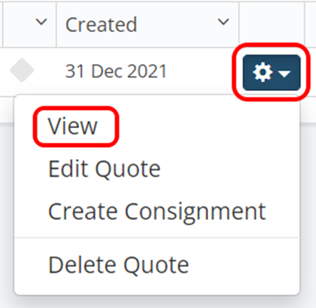 You can then view the Quote through the cog on the right.